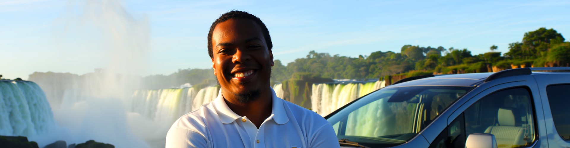 รถตู้สีเงินล่องเรือไปตาม Copacabana ในริโอเดจาเนโร บราซิล ถัดจากวิวทะเลที่สวยงาม