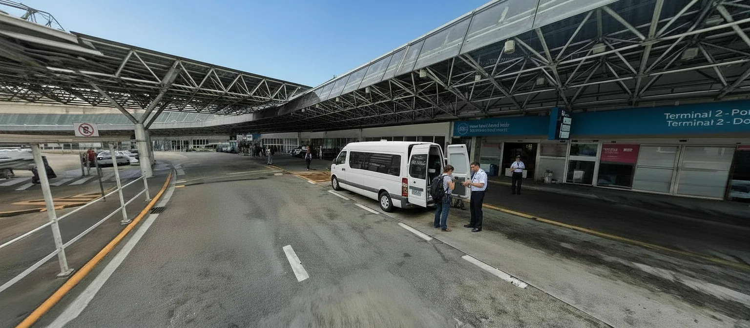 - ไปที่จุดนัดพบของเราที่ชั้นบนสุดของอาคารผู้โดยสาร 02 เพื่อพบกับรถตู้